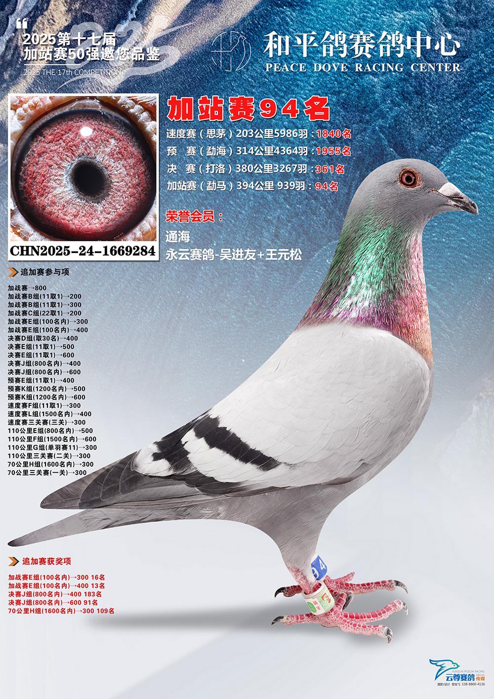 位置:云南玉溪和平鸽赛鸽公棚2025获奖鸽展示\94