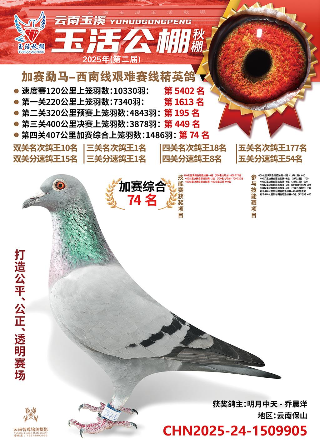 位置:云南玉活公棚秋棚2025获奖鸽展示\加赛综合74名