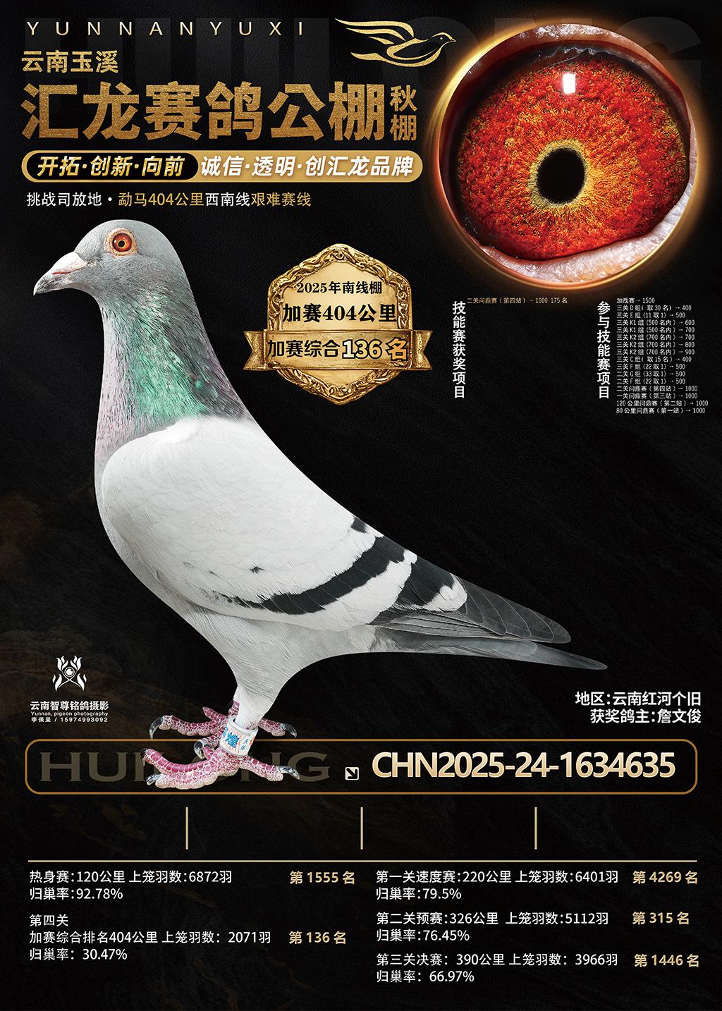 位置:云南玉溪汇龙赛鸽公棚2025获奖鸽展示\加赛综合136名