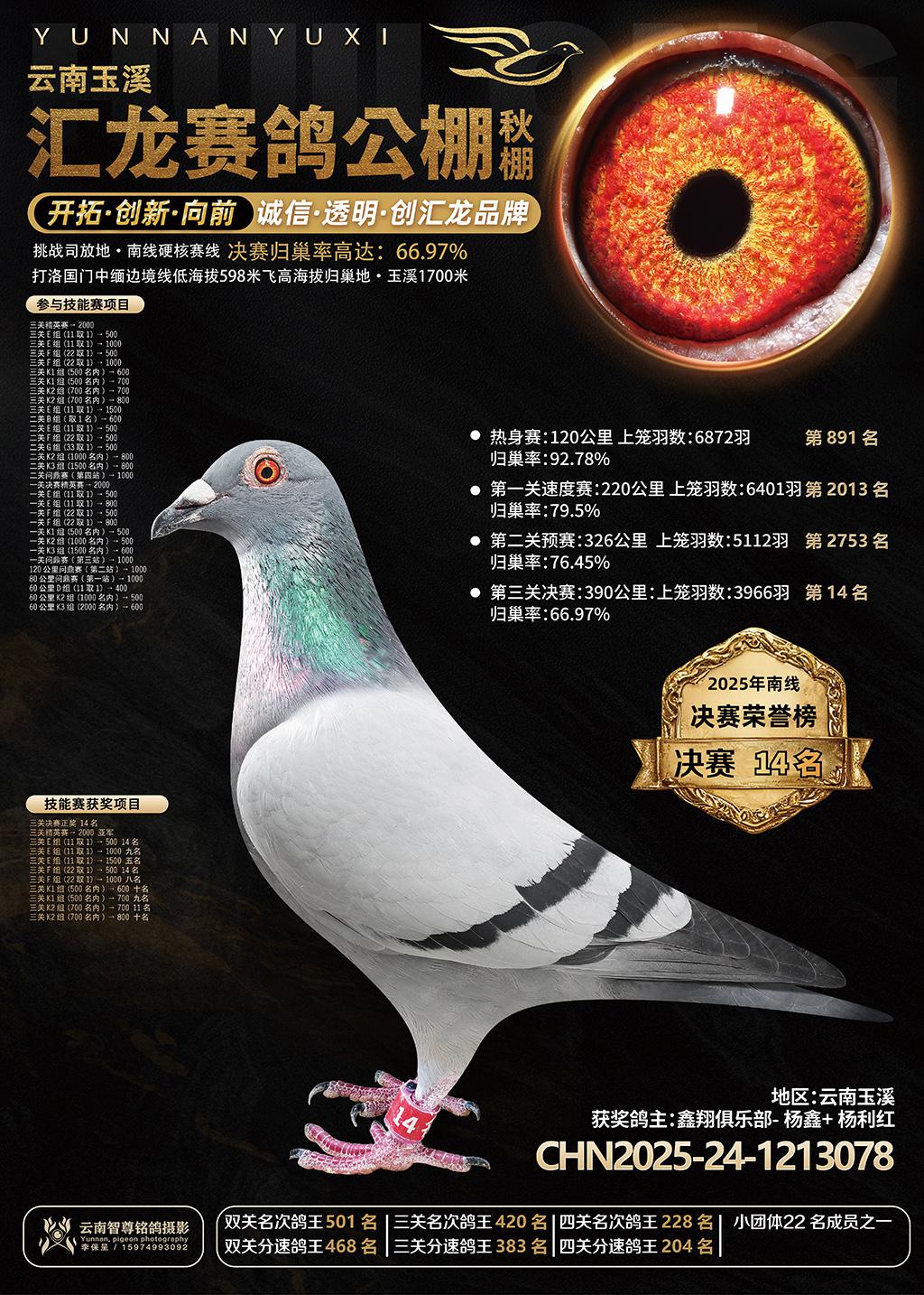 位置:云南玉溪汇龙赛鸽公棚2025获奖鸽展示\决赛14名