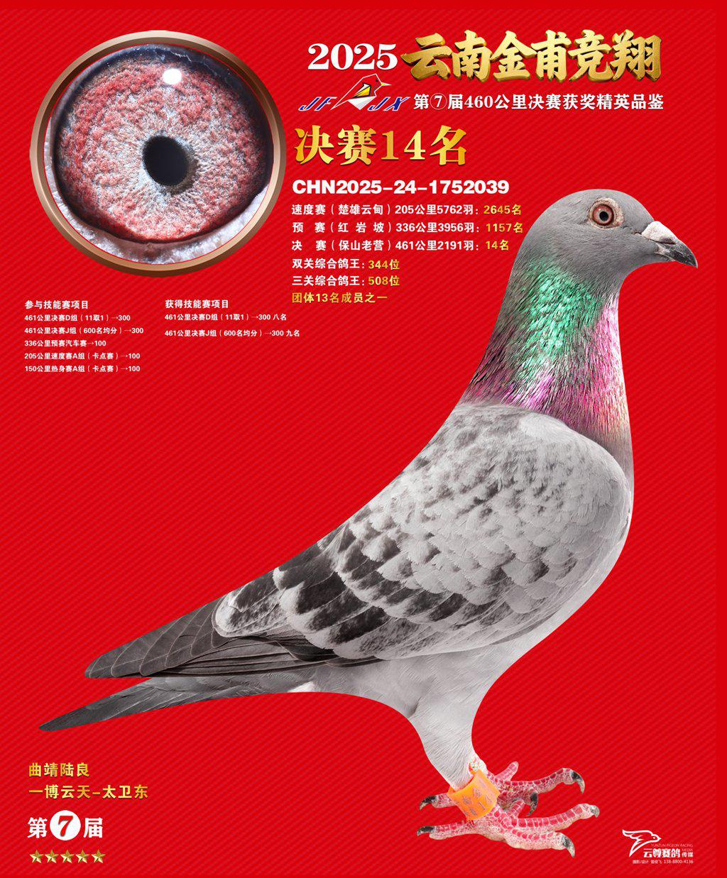 位置:云南金甫竞翔体育发展有限公司2025获奖鸽展示\金甫14名