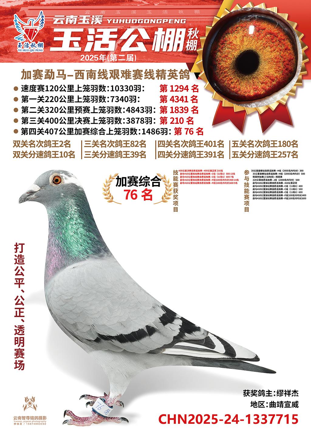 位置:云南玉活公棚秋棚2025获奖鸽展示\加赛综合76名