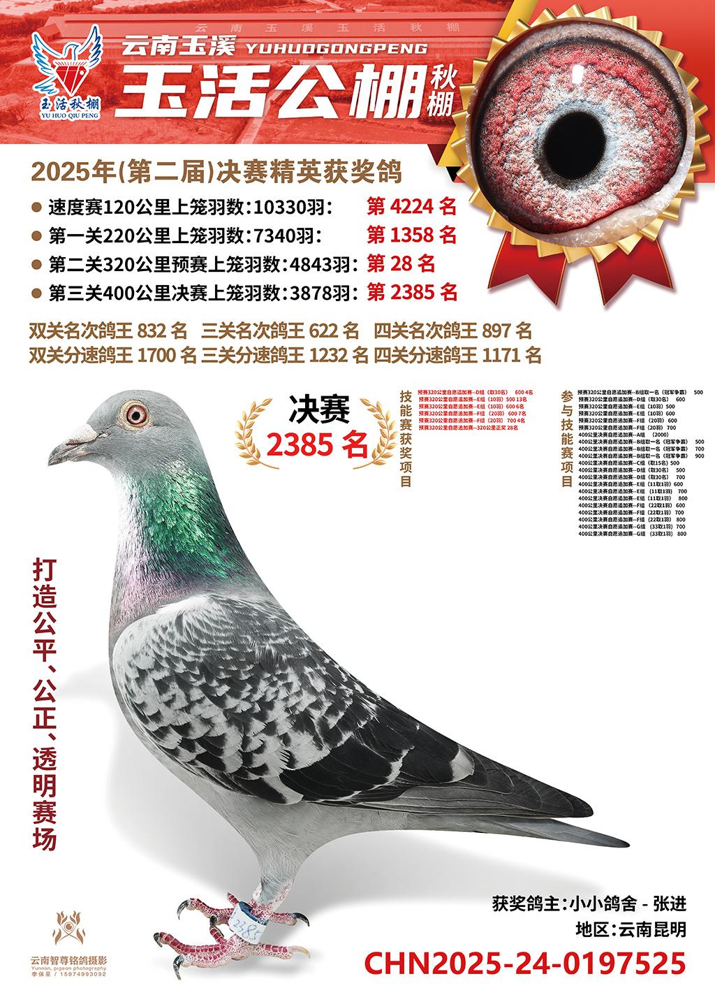 位置:云南玉活公棚秋棚2025获奖鸽展示\决赛2385名