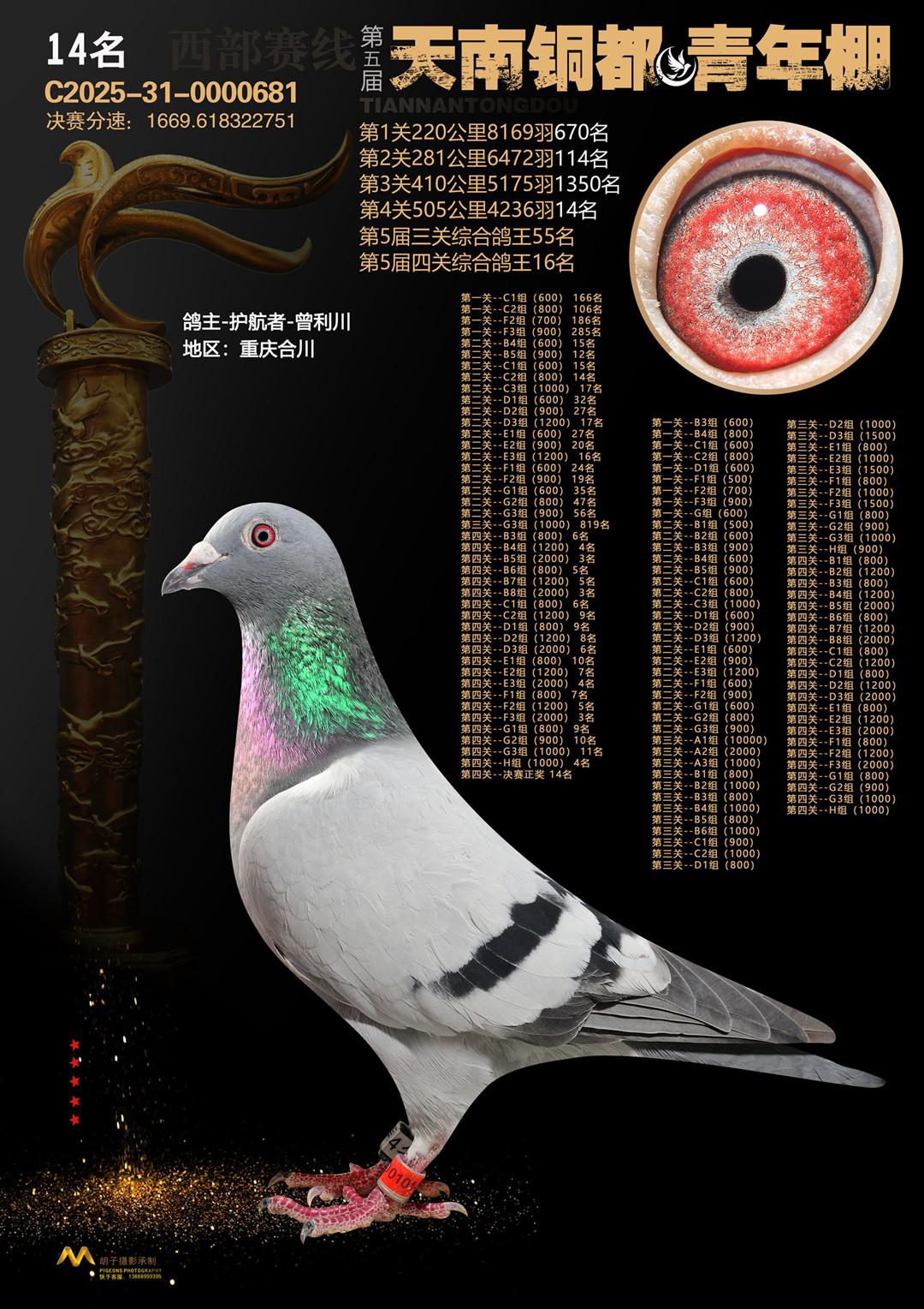 位置:天南铜都青年棚2025获奖鸽展示\决赛站14名