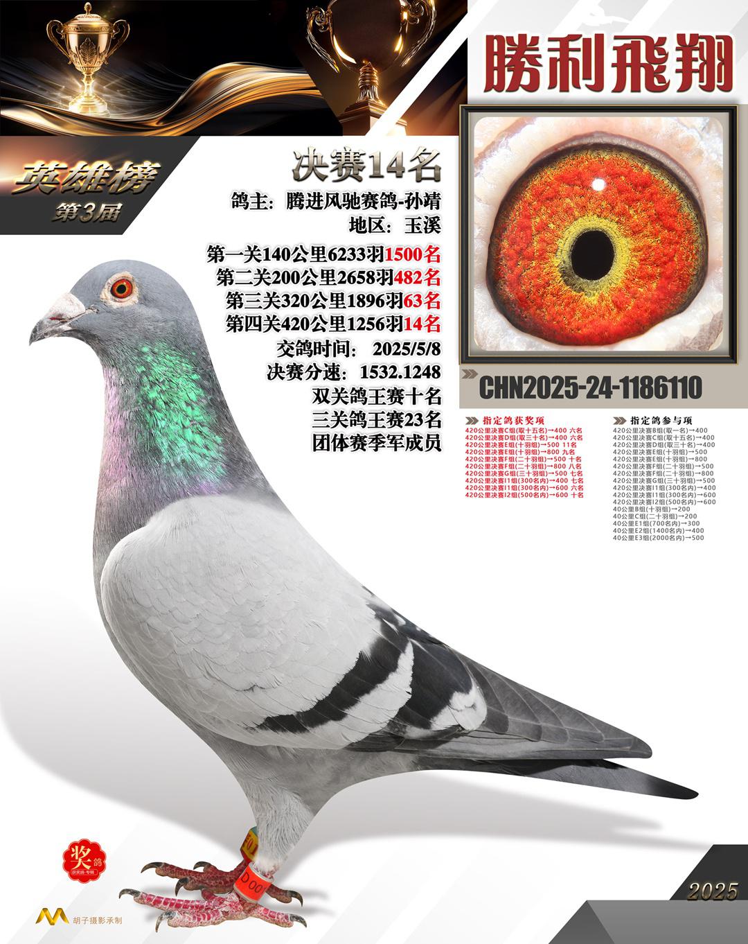 位置:云南宜良勝利飞翔公棚2025获奖鸽展示\14