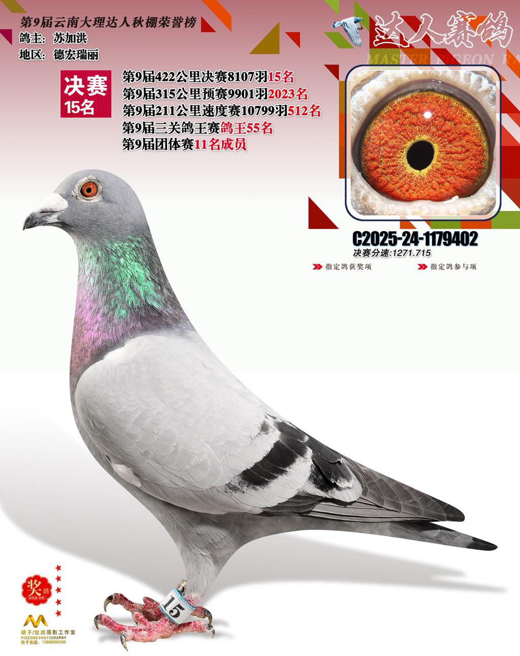 位置:云南大理巍山达人赛鸽中心2025获奖鸽展示\15名