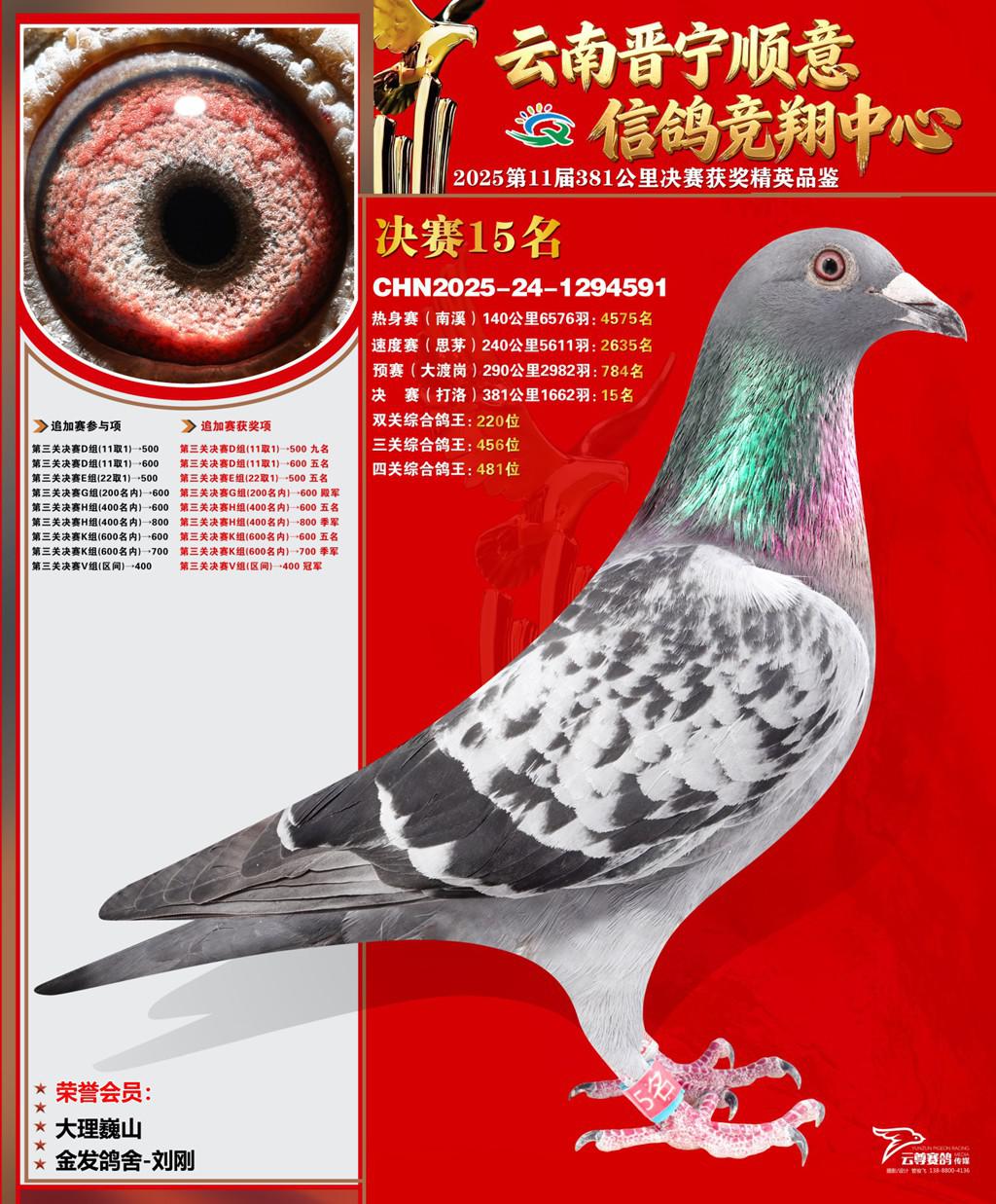 位置:云南晋宁顺意信鸽竞翔中心2025获奖鸽展示\决赛15名
