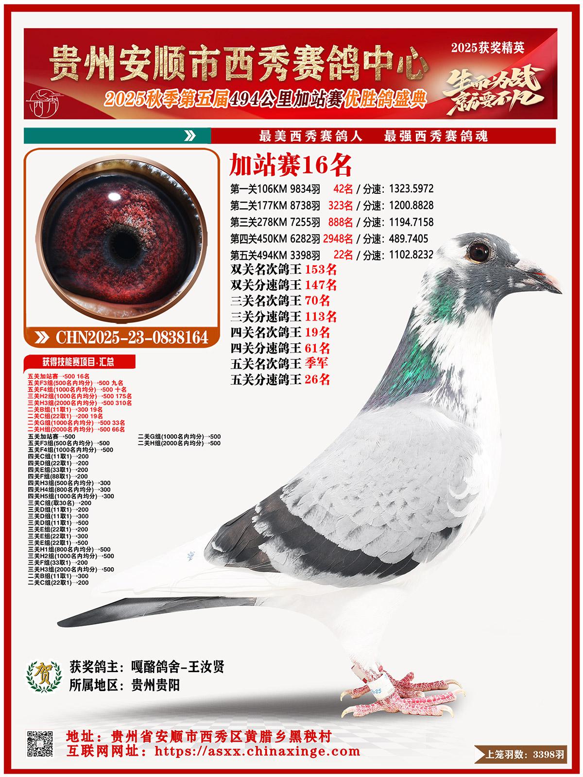 位置:安顺市西秀赛鸽中心2025获奖鸽展示\加站赛16名