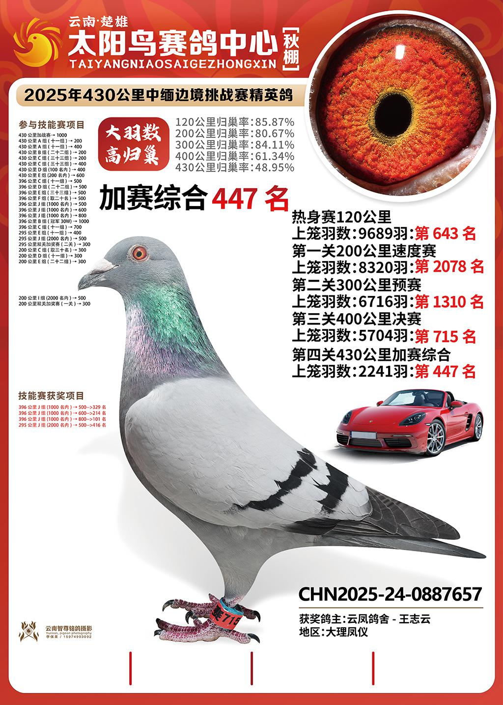 位置:云南太阳鸟赛鸽中心2025获奖鸽展示\加赛综合447名