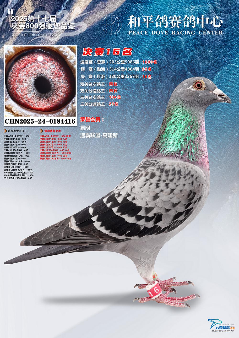 位置:云南玉溪和平鸽赛鸽公棚2025获奖鸽展示\16