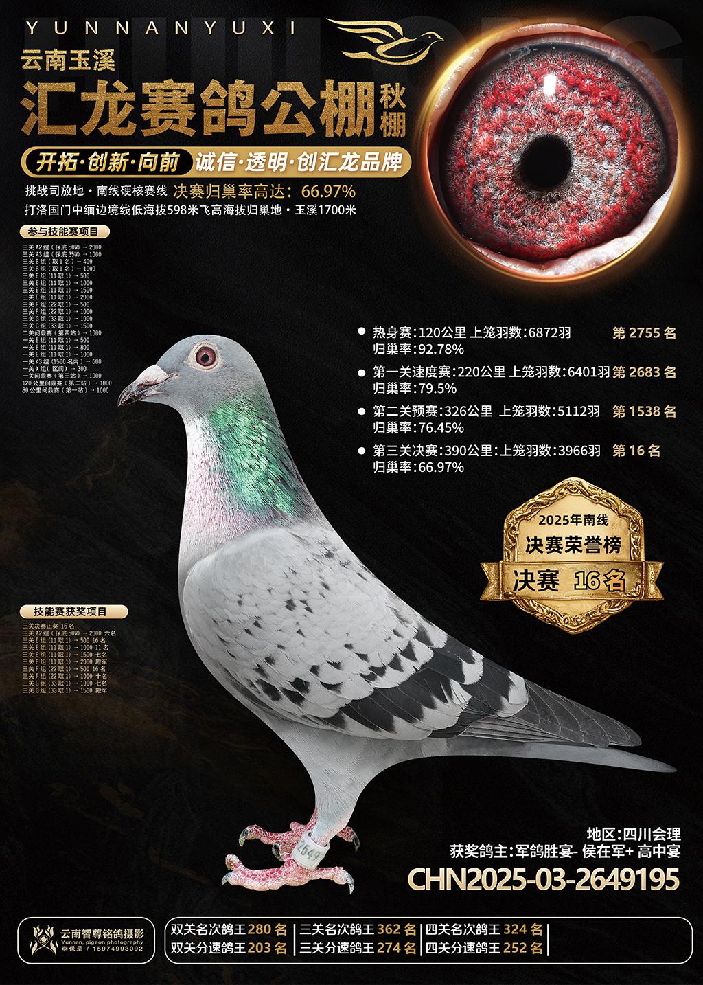 位置:云南玉溪汇龙赛鸽公棚2025获奖鸽展示\决赛16名