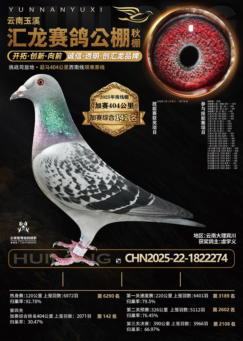 位置:云南玉溪汇龙赛鸽公棚2025获奖鸽展示\加赛综合142名