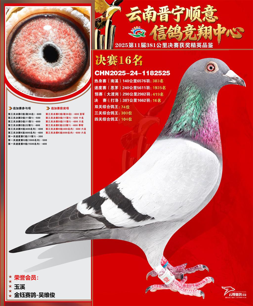 位置:云南晋宁顺意信鸽竞翔中心2025获奖鸽展示\决赛16名