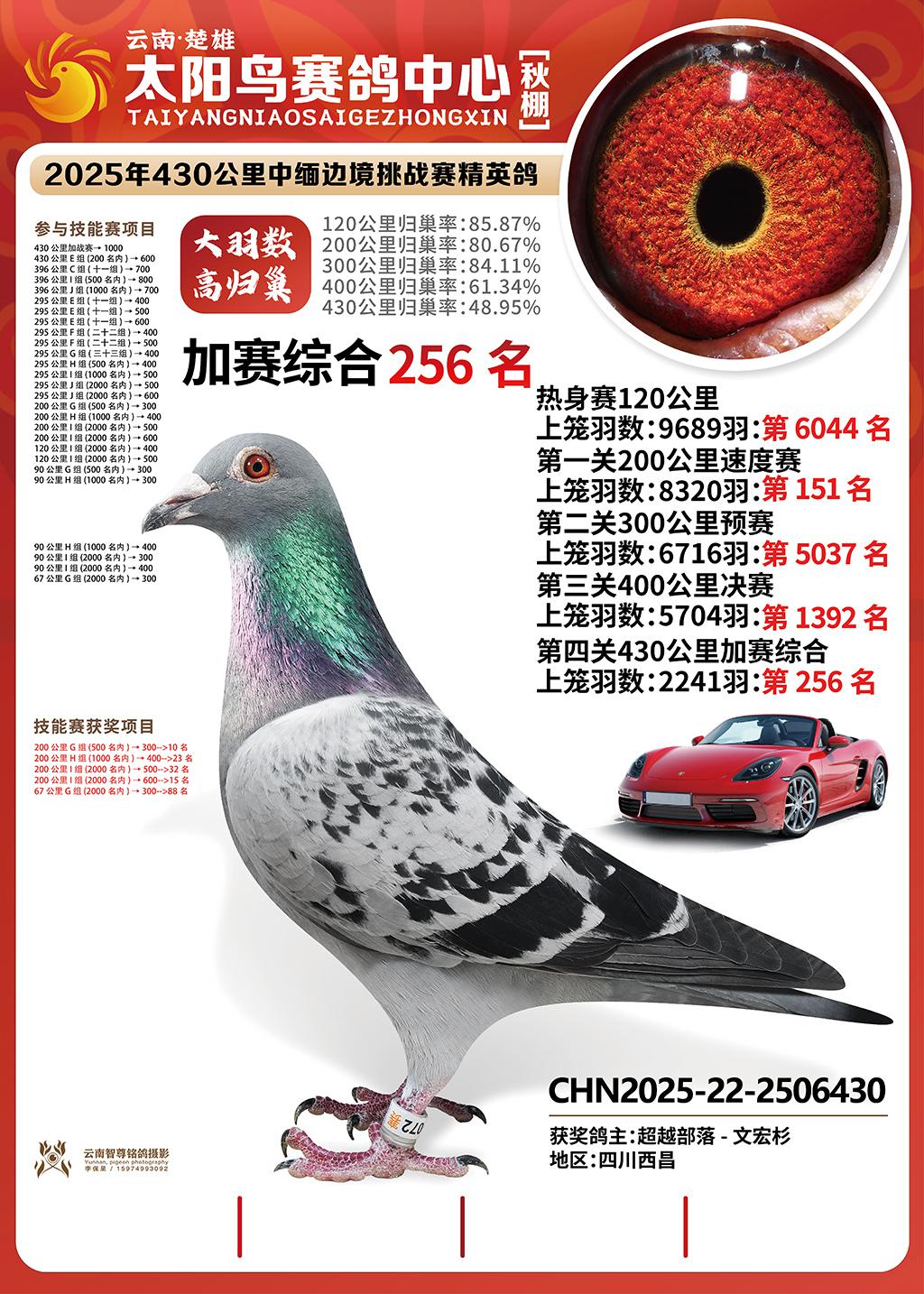 位置:云南太阳鸟赛鸽中心2025获奖鸽展示\综合256名