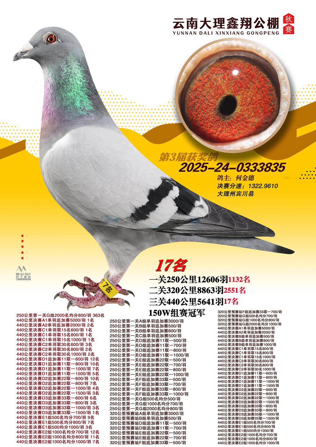 位置:云南大理鑫翔公棚2025获奖鸽展示\17名
