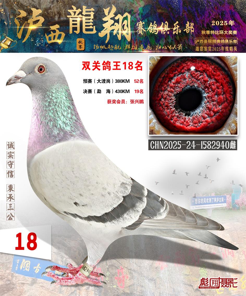 位置:泸西县龍翔赛鸽俱乐部2025获奖鸽展示\18名