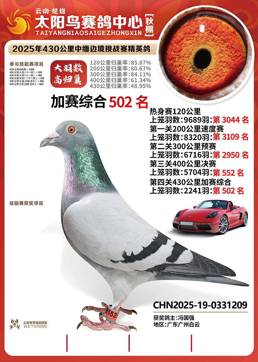 位置:云南太阳鸟赛鸽中心2025获奖鸽展示\加赛综合502名