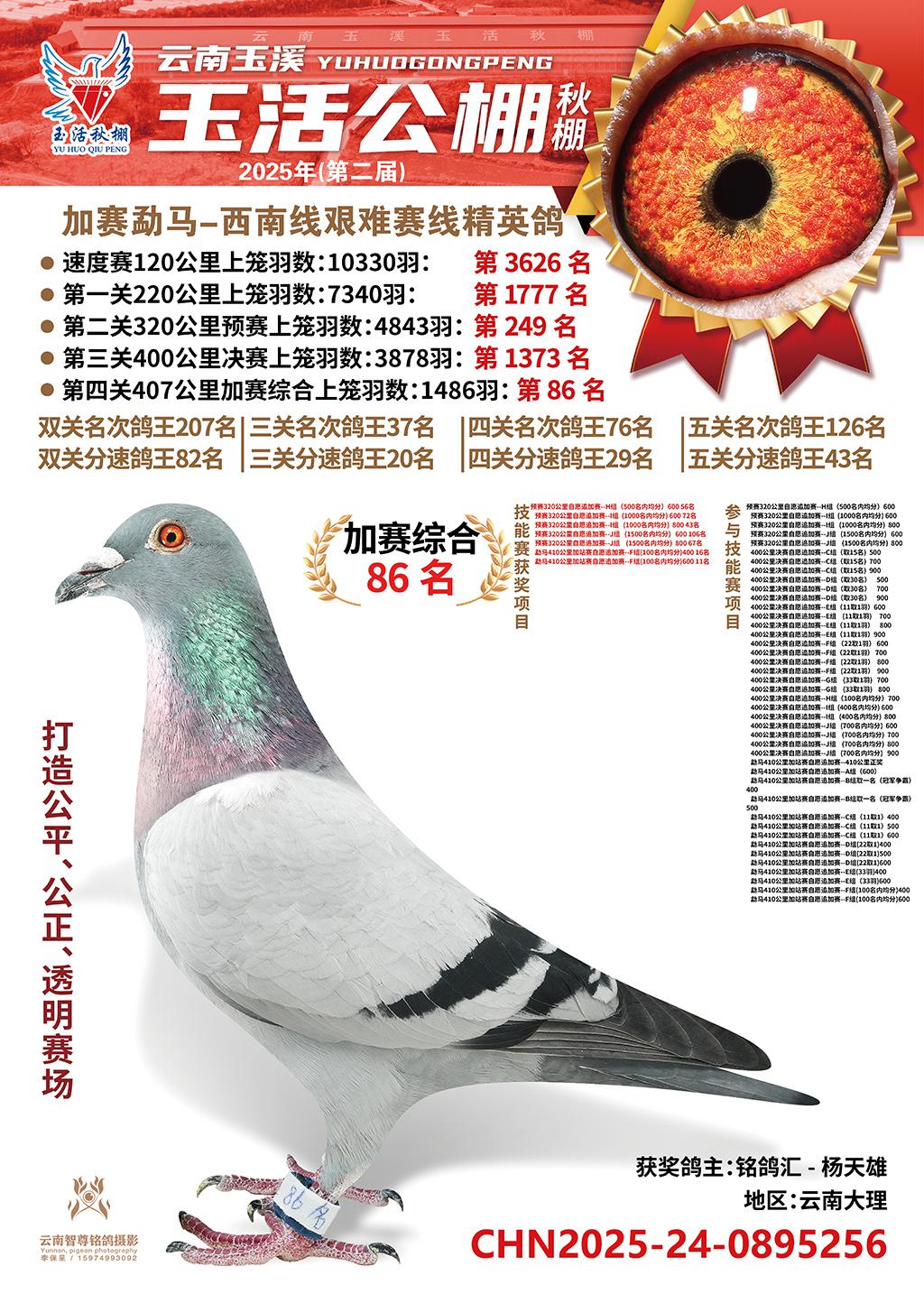 位置:云南玉活公棚秋棚2025获奖鸽展示\加赛综合86名